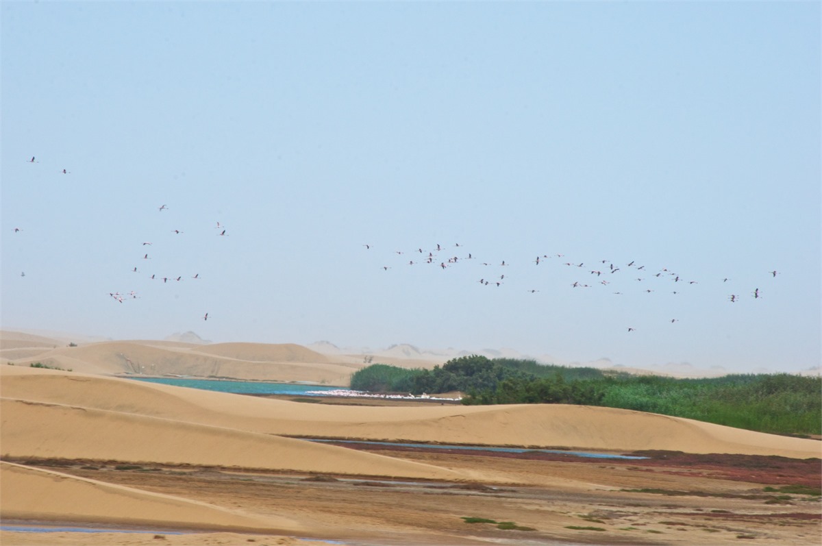 We first drove to see the lesser and greater flamingos. Then we drove through town, thru Swakopmund, & then to Dorob National Park to see the desert escarpment. We had snacks at an oasis in the dry river basin and then to see famous Dune Seven. A world class destination for nature lovers!!! /susanClick a photo to view or click first photo to see a slide show.