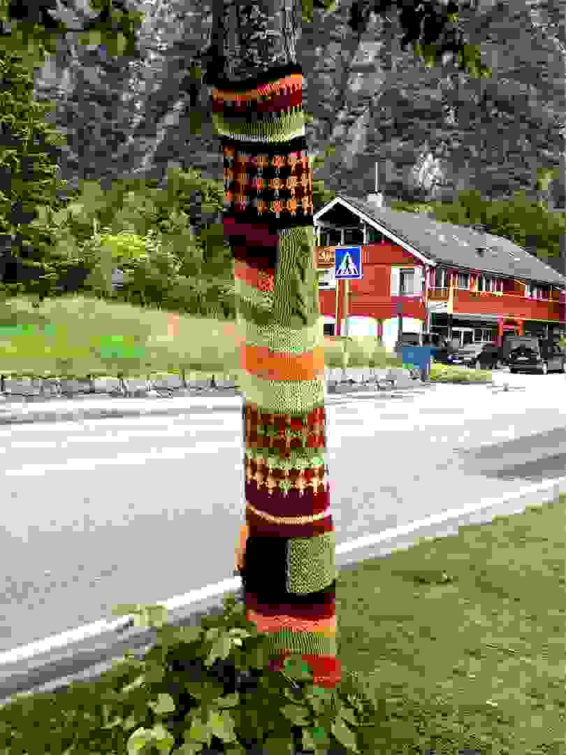 We loved visiting the fjord of Eidfjord and the town with the same name. Our main objective was visithig Voringsfossen waterfall which we did before the rain began. The trees downtown had stockings knitted over the trunks to keep them warm! /susanClick a photo to view or click first photo to see a slide show.