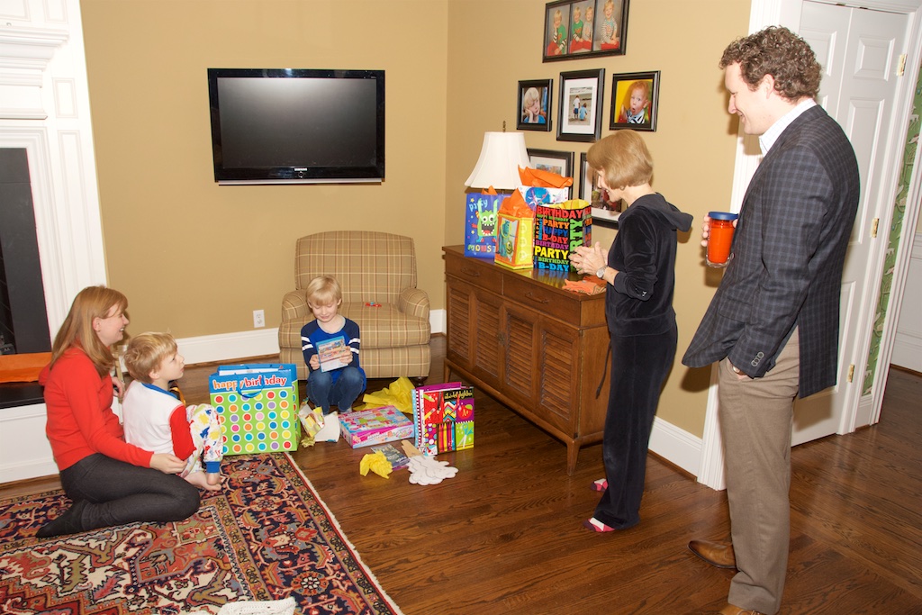 A whole day of birthday celebrations for Hudson. We awoke to a big birthday breakfast and Hudson opened some presents. Mimi & I at lunch at Kentucky Country Day School with Hudson and then picked up Cooper who rode the Razor car all afternoon. Then Kate came over and brought more presents and we all went to Red Robin for a birthday dinner. What a big boy you are Hudson!!! /ducky