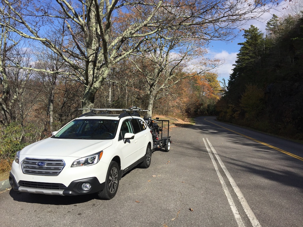 I saw an unseasonably warm forcast for the Burnsville, NC area and took advantage to trailer the Roadster to the Blue Ridge Parkway and ride all afternoon including three trips up Mount Mitchell, the highest elevation east of the Mississippi River. Beautiful fall colors to 4500 ft, then no leaves anymore! /hugh