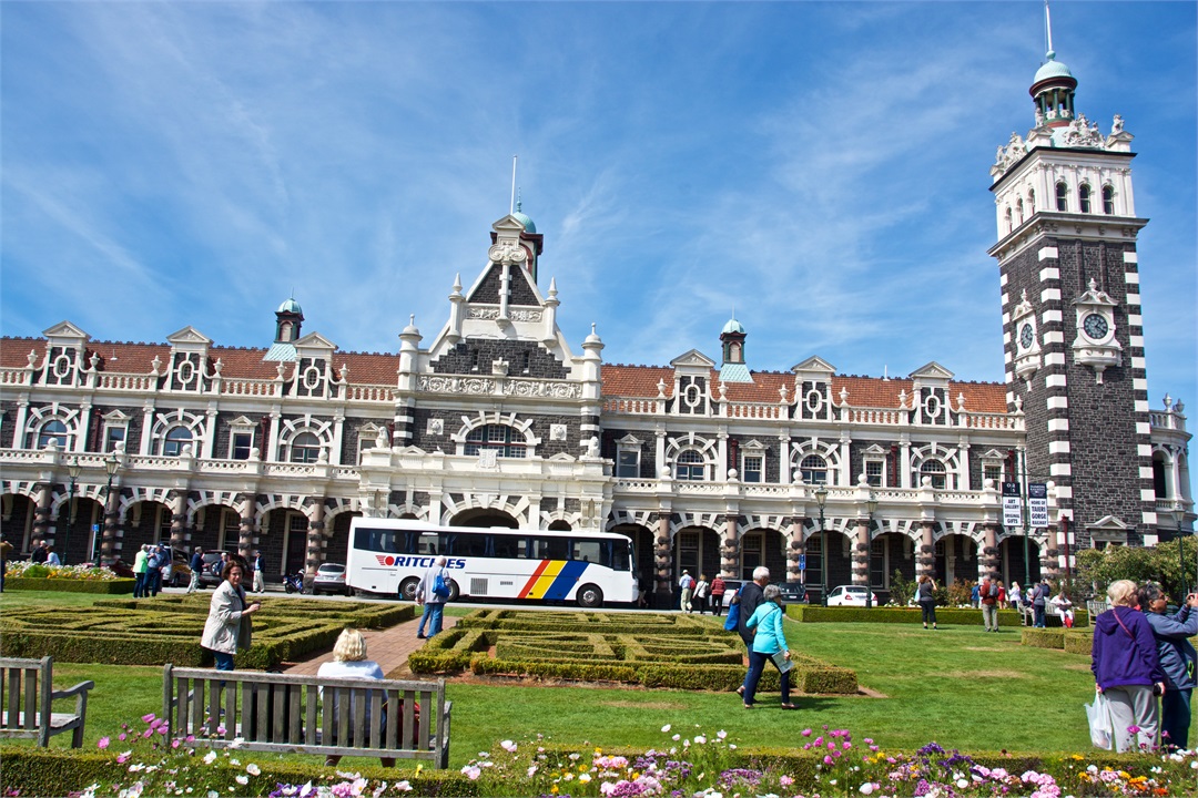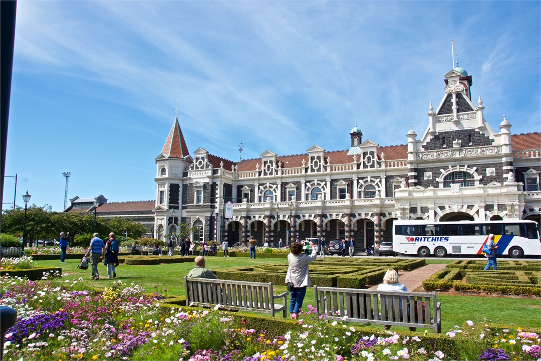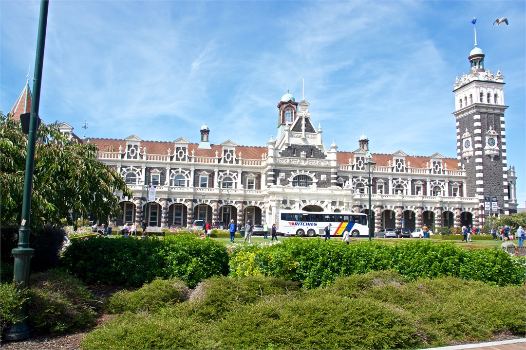 While I was on my safari and nature cruise, Hugh took an excursion on the Taieri River Gorge Railway from the wharf in Dunedin to Pukerangi passing over the scenic Wingatui Viaduct. He most enjoyed the gingerbread house-like Dunedin Railway Station.
