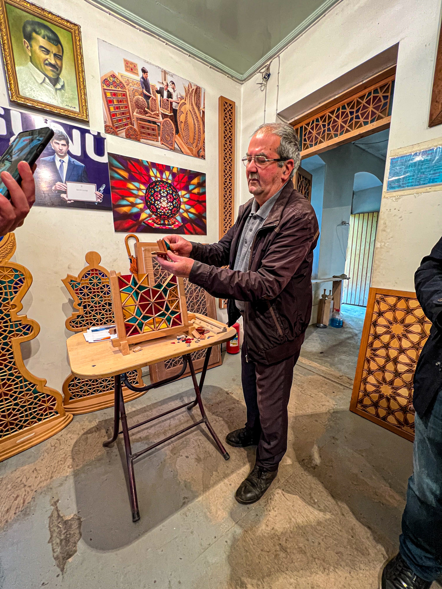 We enjoyed our visit to Sheki, Azerbaijan. Our first stop was the fortified palace of the Shaki Kahn followed by a visit to a stained glass master's shop where we learned how he makes the windows and puzzles. We ended with a visit to the craft market. /susanClick a photo to view or click first photo to see a slide show.