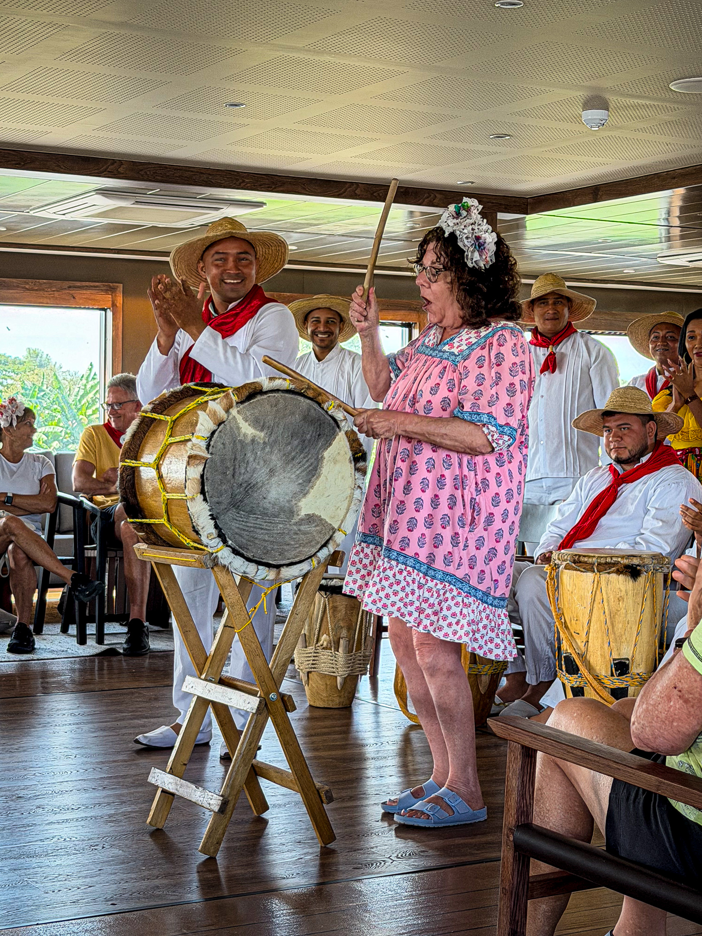 The dance combia is most-practiced in this area up the Magdalena River and today we were joined for a lesson by locals who traveled by water two hours to get here!