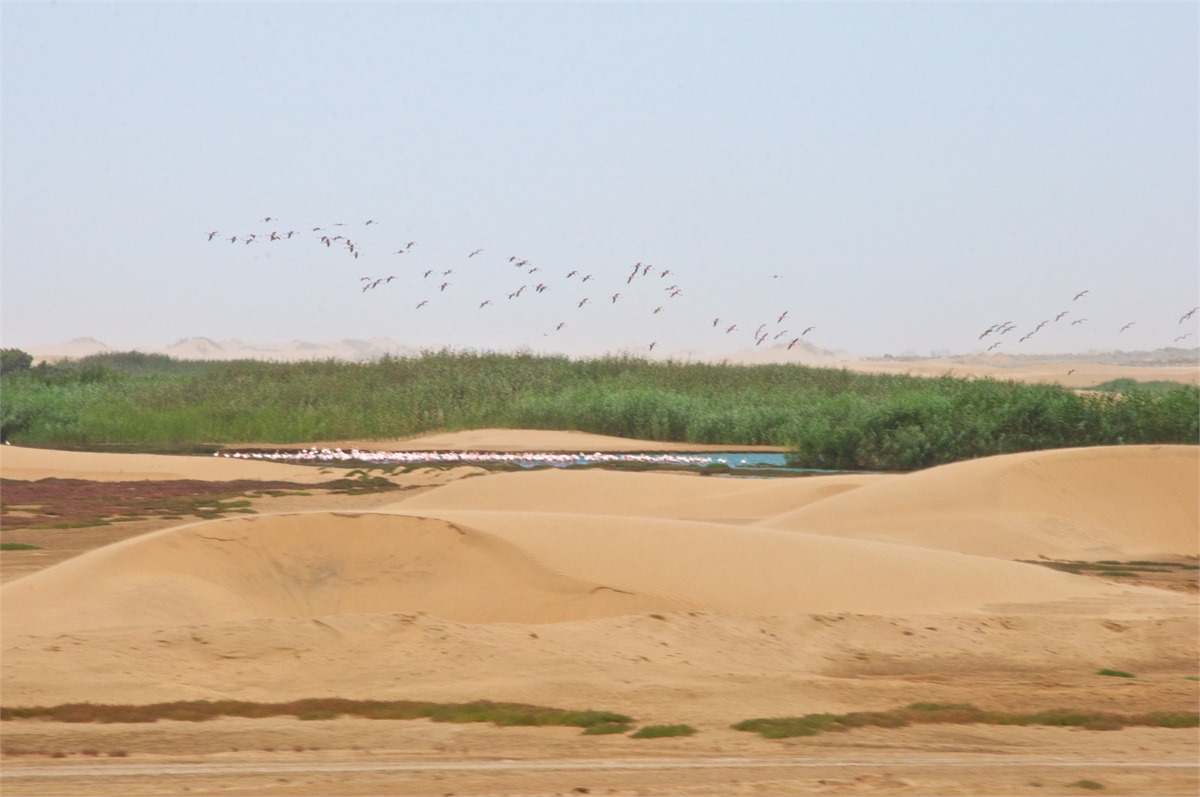We first drove to see the lesser and greater flamingos. Then we drove through town, thru Swakopmund, & then to Dorob National Park to see the desert escarpment. We had snacks at an oasis in the dry river basin and then to see famous Dune Seven. A world class destination for nature lovers!!! /susanClick a photo to view or click first photo to see a slide show.