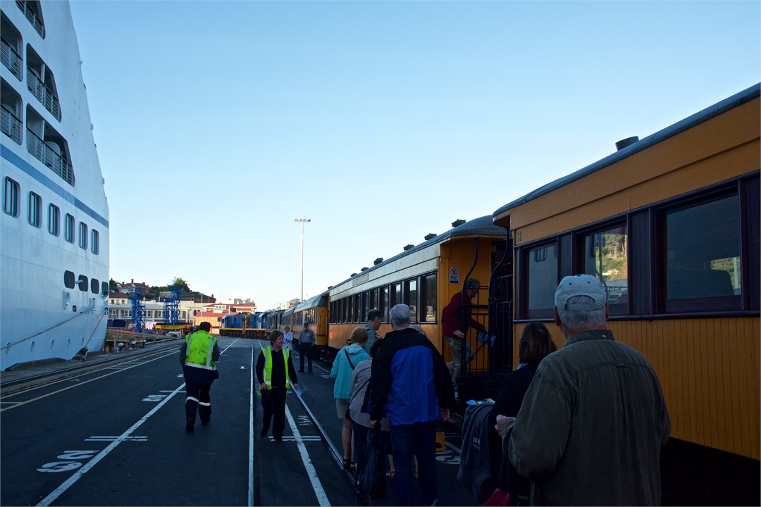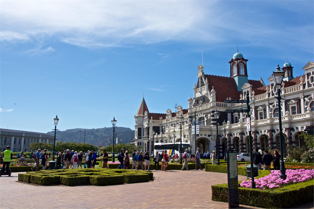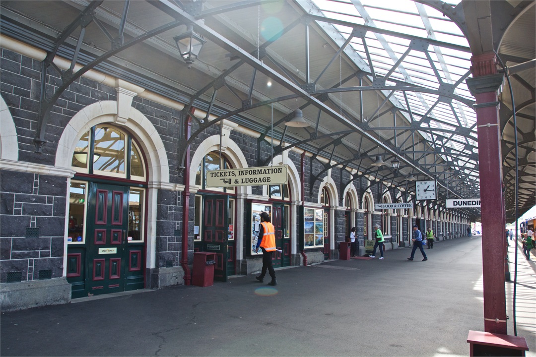 While I was on my safari and nature cruise, Hugh took an excursion on the Taieri River Gorge Railway from the wharf in Dunedin to Pukerangi passing over the scenic Wingatui Viaduct. He most enjoyed the gingerbread house-like Dunedin Railway Station.
