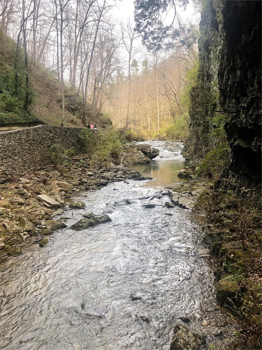 Just off of the Blue Ridge Parkway in Virginia is the Natural Bridge State Park. This is land surveyed by George Washington and owned by Thomas Jefferson. A great hike and scenery! /hugh