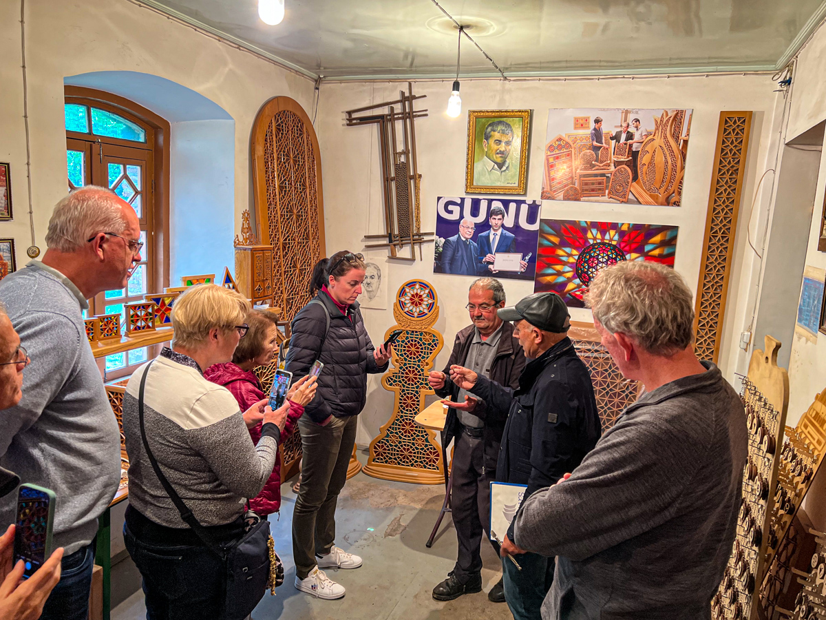 We enjoyed our visit to Sheki, Azerbaijan. Our first stop was the fortified palace of the Shaki Kahn followed by a visit to a stained glass master's shop where we learned how he makes the windows and puzzles. We ended with a visit to the craft market. /susanClick a photo to view or click first photo to see a slide show.