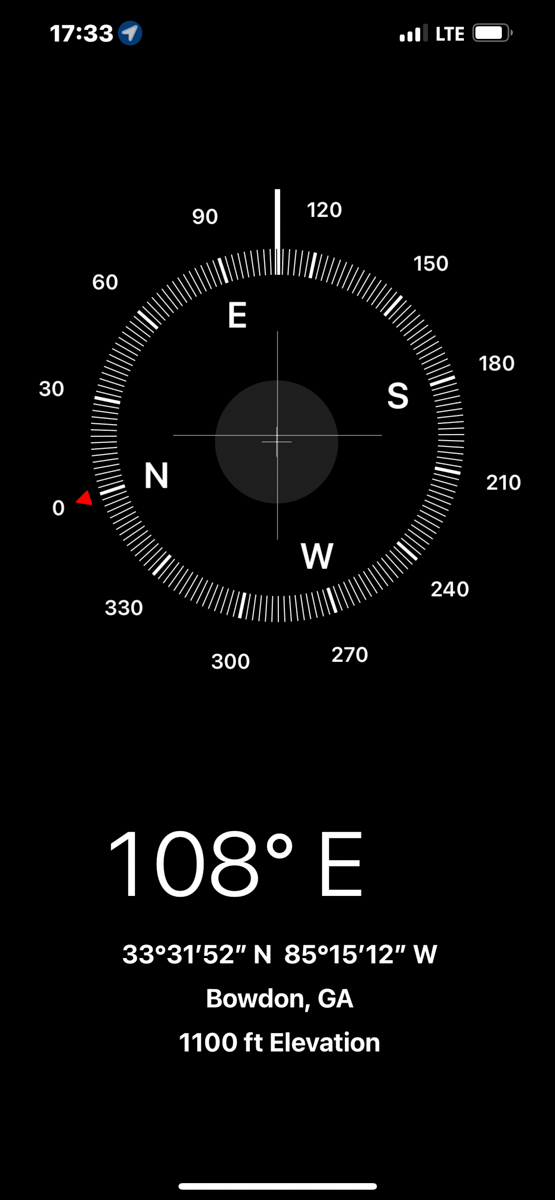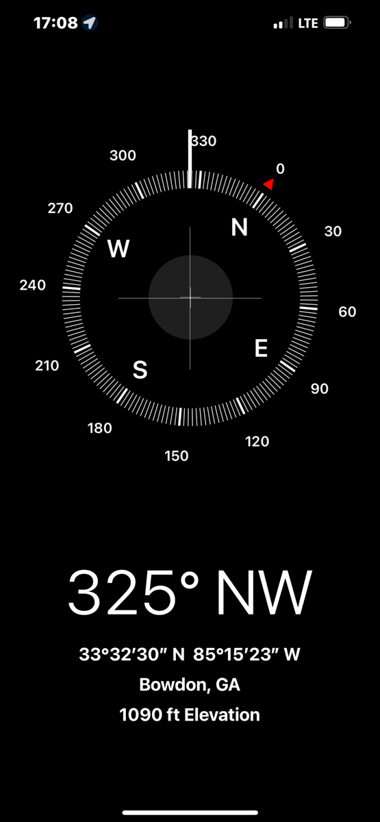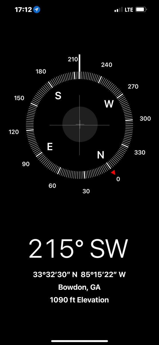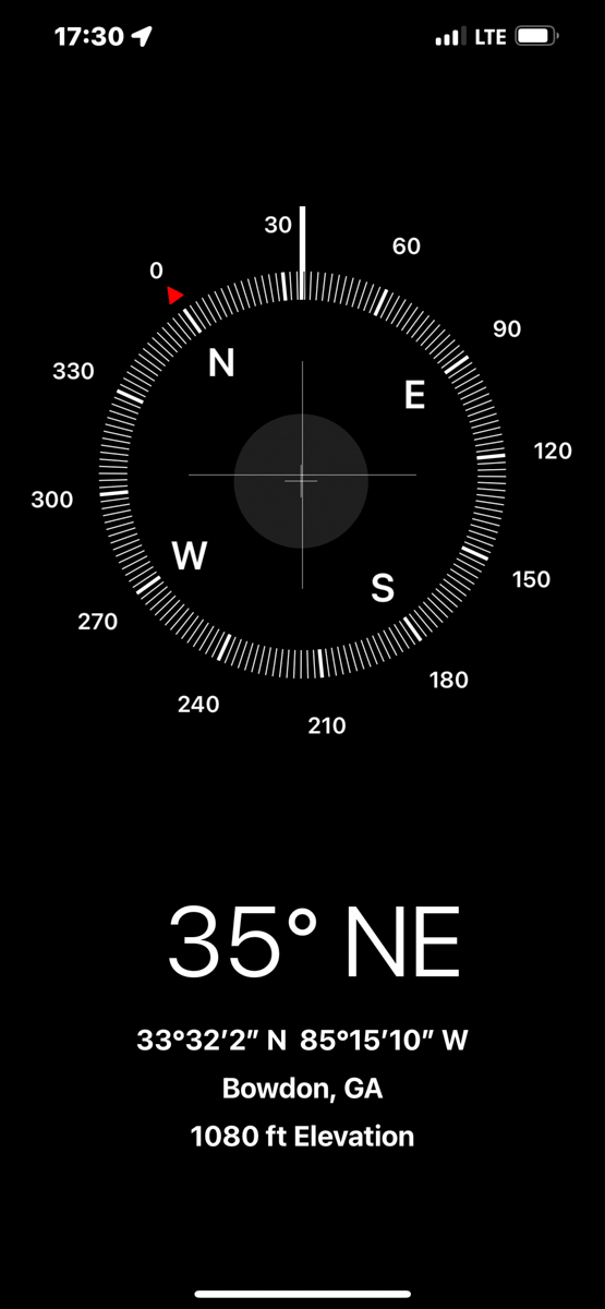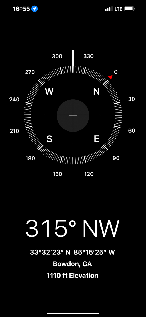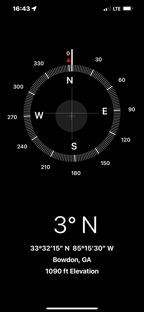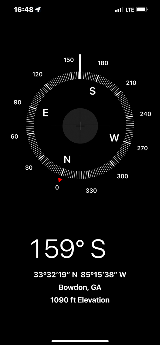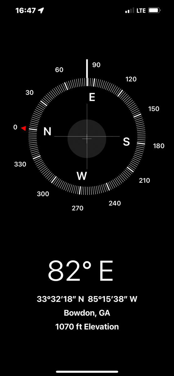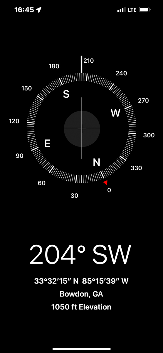 Both of my parents grew up in Bowdon, Georgia and are deceased. Today I rode my motorcycle around documenting the locations of graves, houses, and other significant sites in Bowdon. The compass and coordinates are in the location & direction I was standing as I took the predeeding photo. /hugh