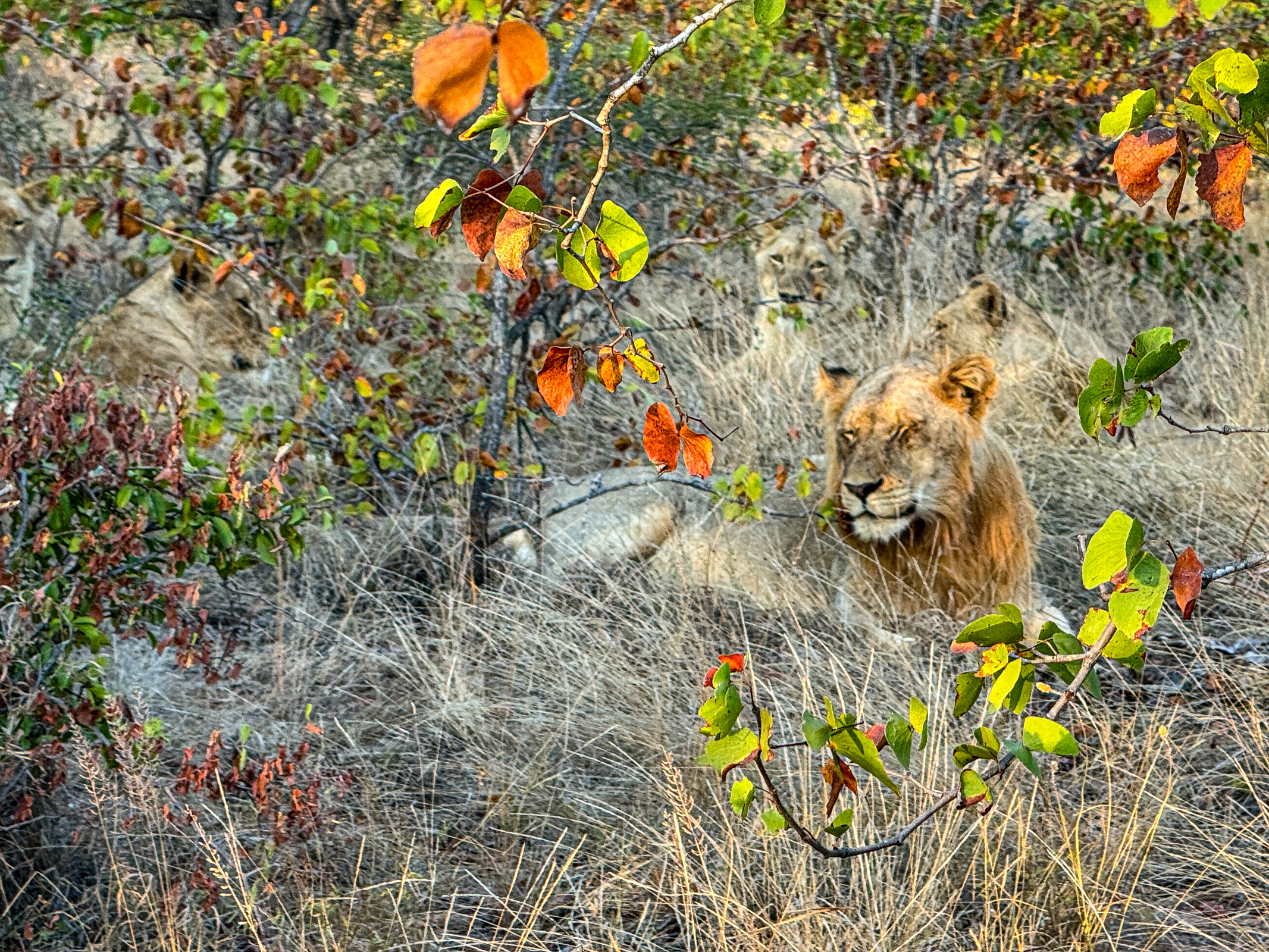 We had heard that a large pride of lions was hunting a good distance away and we went looking. From their looks, thay ha fed well and were resting. /susanClick a photo to view or click first photo to see a slide show.