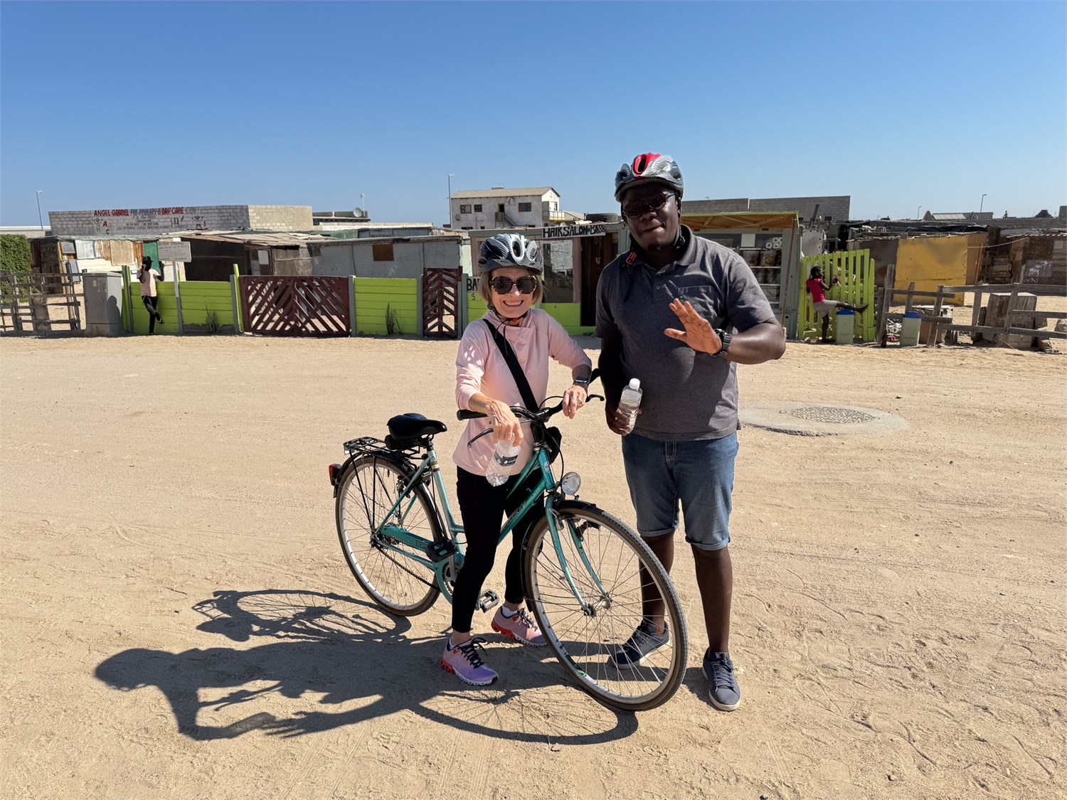 When the South Africans took over Namibia from the Germans, they instituted their Apartheid, moving people out of Swakopmund into three ghettos collectively called Mondessa. We explored the area on bicycles with our guide Thomas. We visited locals and ate in private home. We had previously explored the outdoor attractions and sand dunes in the Walvas Bay area on other cruises. /susanClick a photo to view or click first photo to see a slide show.